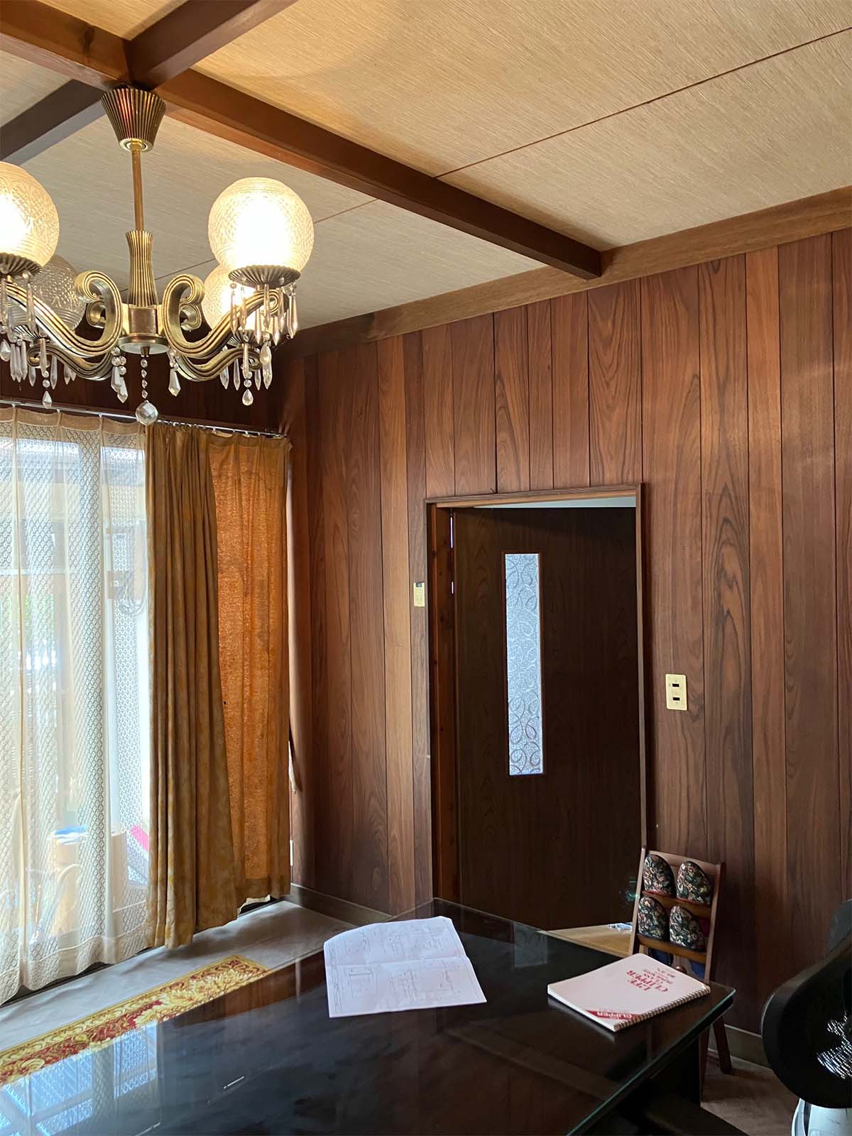 お客様のご要望長年使われず、物置と化していた応接間。床は歩くと沈むほどたわみが出ており、いつか本格的に直さないとと感じつつ、なかなか手がつけられずにいたそうです。昭和の雰囲気が残る空間でしたが、せっかくリフォームするなら思い切って今風の洋室に一新したい、というご希望をいただきました。