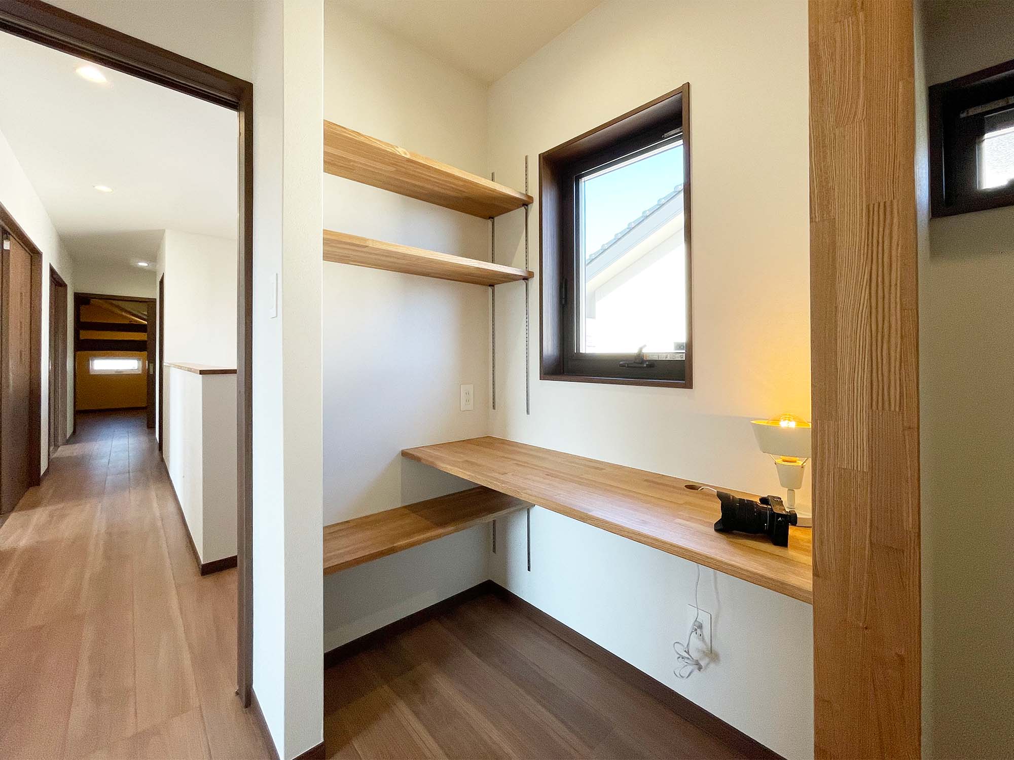 2階は書斎から寝室へつながる動線とし、子供部屋も確保。柱や梁はあえて黒で塗装し、空間にメリハリを持たせています。さらに2階にはトイレを新設し、生活の利便性を高めました。