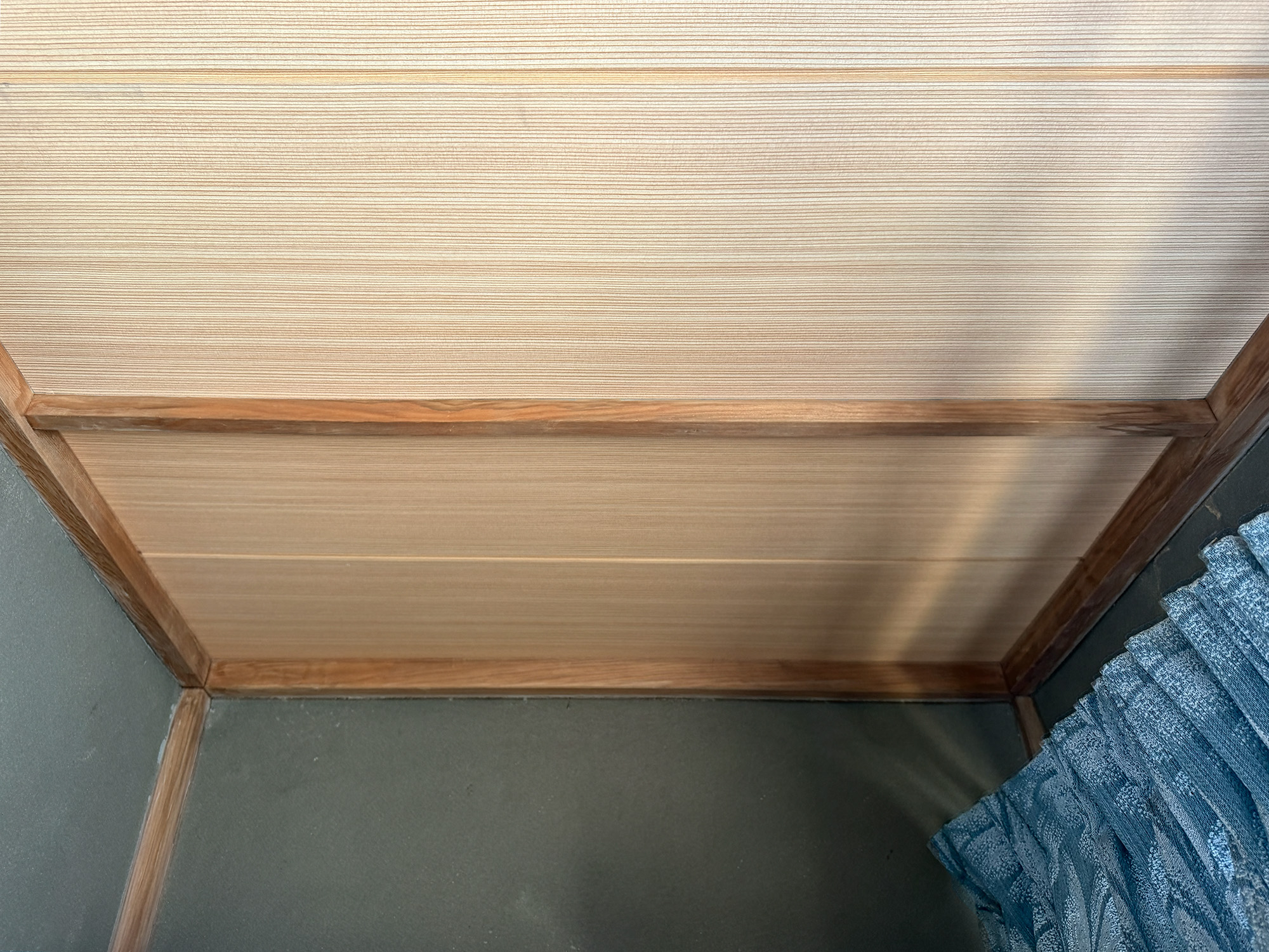| 施工内容 | 現地調査を行い、雨漏り箇所の原因を確認したうえで、一部の瓦をめくって下地を補修し、必要な修繕を実施しました。的確に原因箇所へ対応したことで、施工後は雨漏りもぴたりと止まり、安心してお過ごしいただける状態となりました。 また、保険適用によりお客様のご負担も抑えながら工事を進めることができました。室内では、雨漏りの影響を受けていた縁側の天井もリフォームし、明るくきれいな空間へと整えました。 |