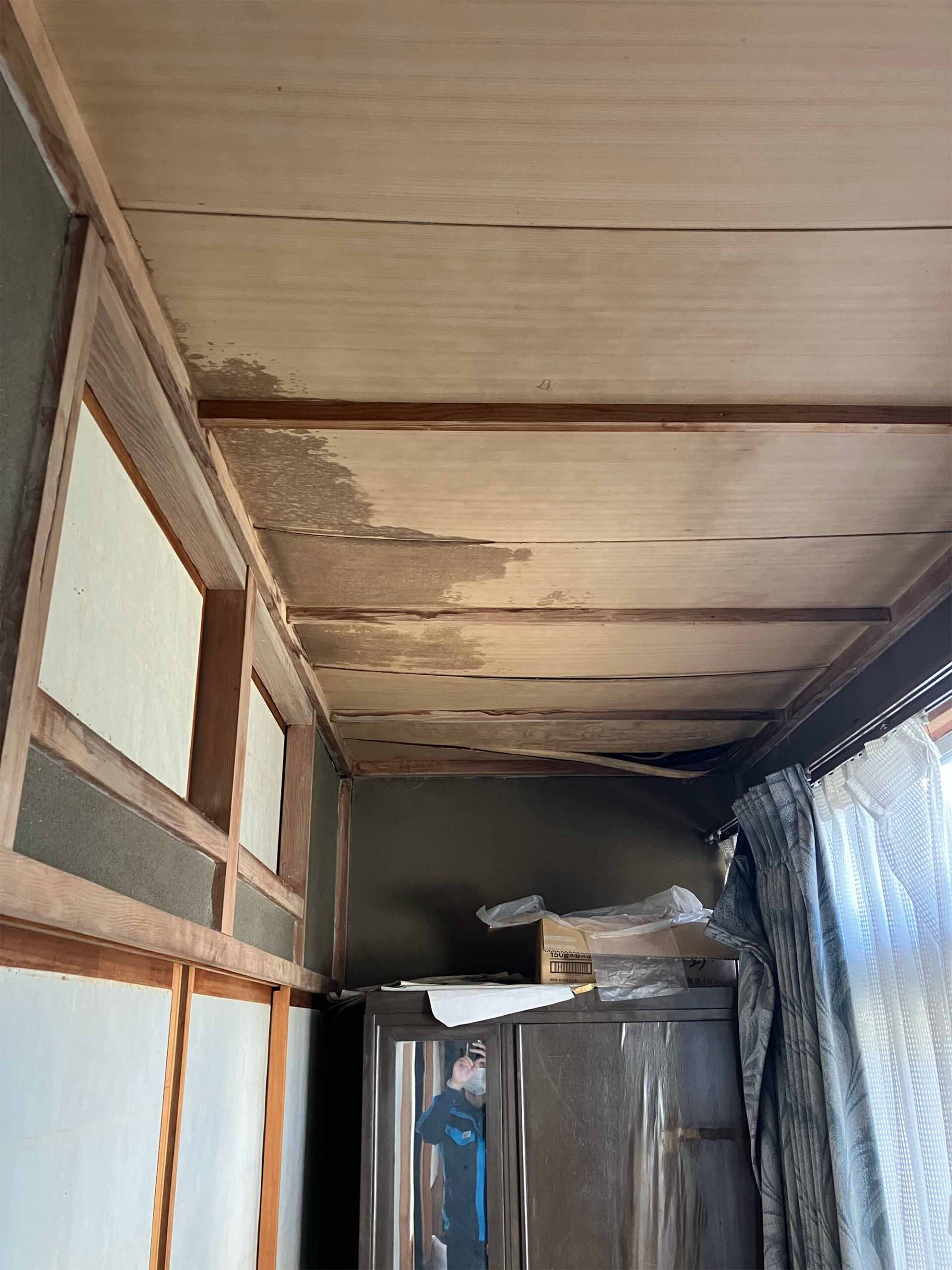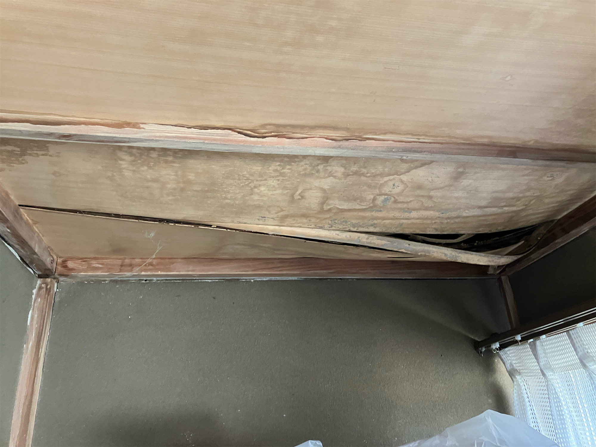 | お客様のご要望 | 雨漏りが発生し、室内への影響が出ていたため、早急に原因を特定してしっかり直したいとのご相談をいただきました。できるだけ負担を抑えて修繕したいという思いもあり、火災保険の適用についても確認しながら進めたいとのご要望でした。また、雨漏りによって傷んでしまった縁側の天井も、この機会にきれいに直したいと希望されていました。 |